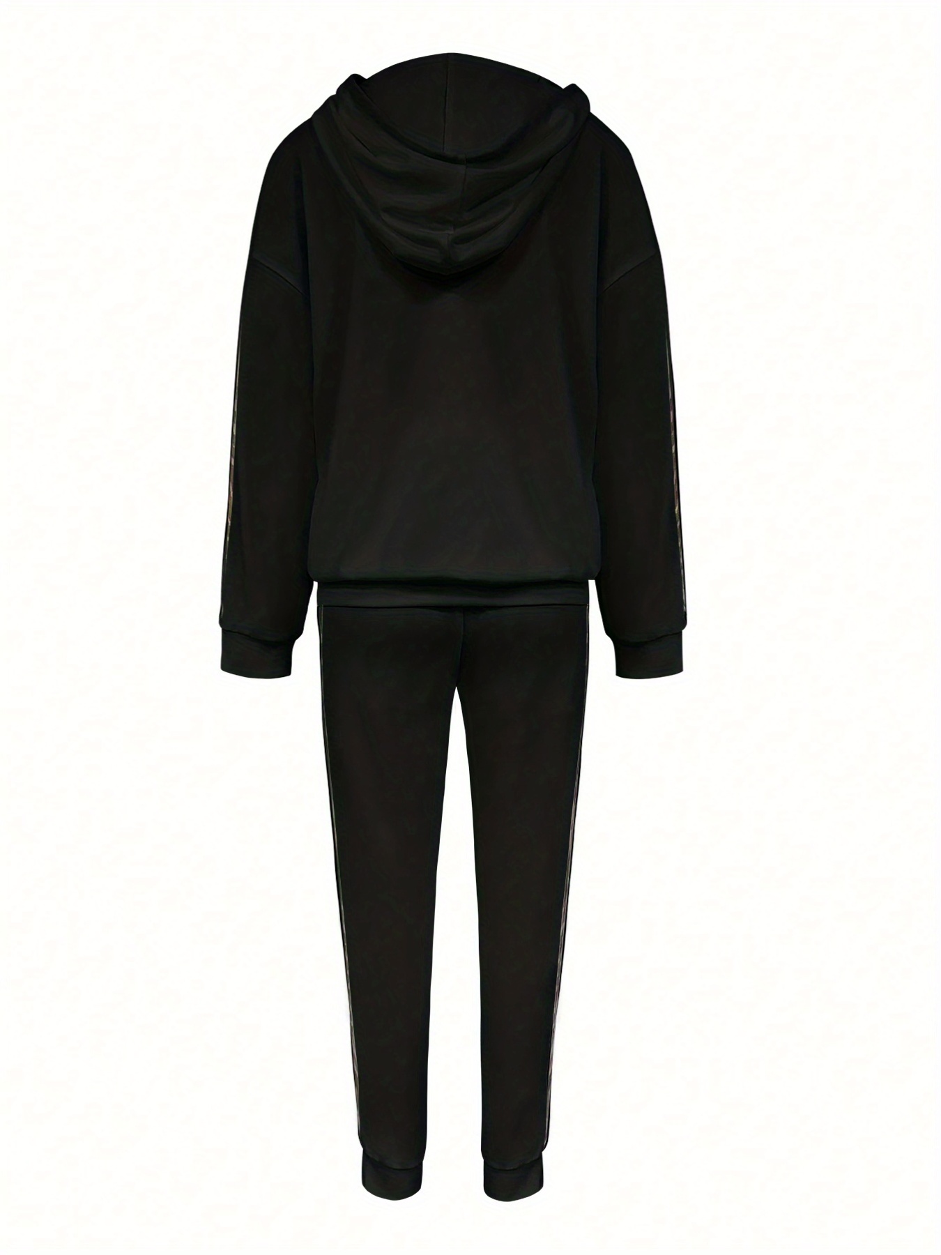 Designed with bold letter-print detailing and sleek two-tone color blocking, this outfit delivers a trendy, eye-catching appearance while ensuring all-day comfort. Perfect for casual outings, lounging, travel, or everyday fall and winter wear, this sweatsuit set offers the ideal balance of warmth, fit, and fashion.